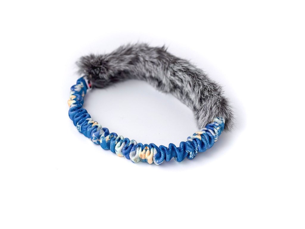 Kroužek z pravé králičí kožešiny a amortizéru je skvělá motivační hračka na přetahování. Je šitá pevnými průmyslovými nitěmi a uvnitř je všitý popruh pro vysokou pevnost. V našem motivu Tail vibes only.